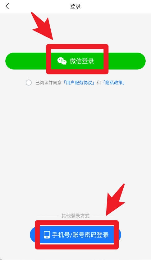 1、在登录页面,用户可以选择微信快捷登录,也可以通过手机号或账号密码登录,快速进入软件。