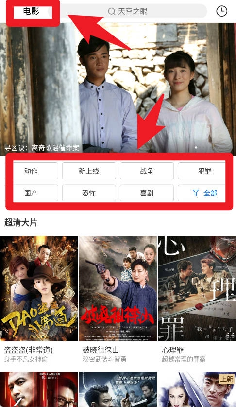 3、在电影频道,用户可以通过分类筛选动作、喜剧、恐怖等类型影片,轻松浏览并选择感兴趣的电影。