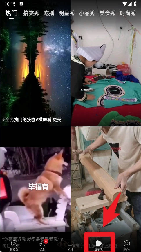 4、在搞笑秀板块,用户可以浏览热门、搞笑、美食等多样化的短视频内容,满足休闲娱乐的需求。