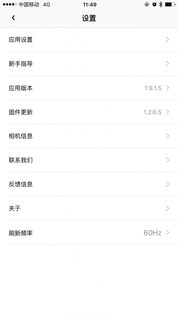 设置:在设置界面,查看版本和相机固件版本,可以修改当前相机wifi密码。