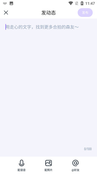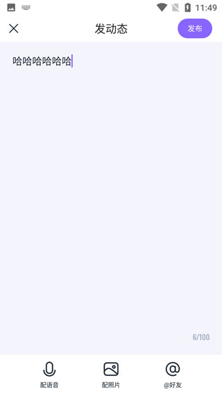 2、填写你要发的文字,你可以自由的进行配音、配图片、以及@好友